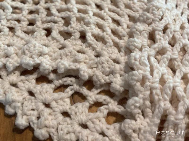 Indien jy ’n wasmasjien gebruik, plaas die sjale eers in ’n wassakkie. Lê plat om droog te word sodat die vorm mooi behoue bly. Moenie in die droër sit nie.