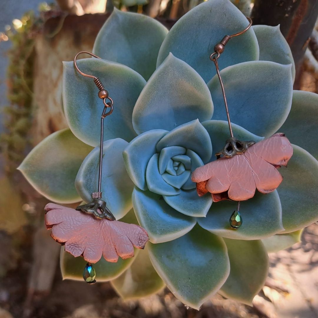 La Fleurette oorbelletjies is sorgvuldig handgemaak van egte leer en afgewerk met glinsterende kristalle. Lig en elegant, elke stel is vol karakter en fyn detail, perfek om ’n subtiele, verfynde bosveld‑vibe by jou styl te voeg. Elke paar dra die warmte en unieke aanraking van handwerk, wat dit ’n besonderse toevoeging tot jou juwele-versameling maak.