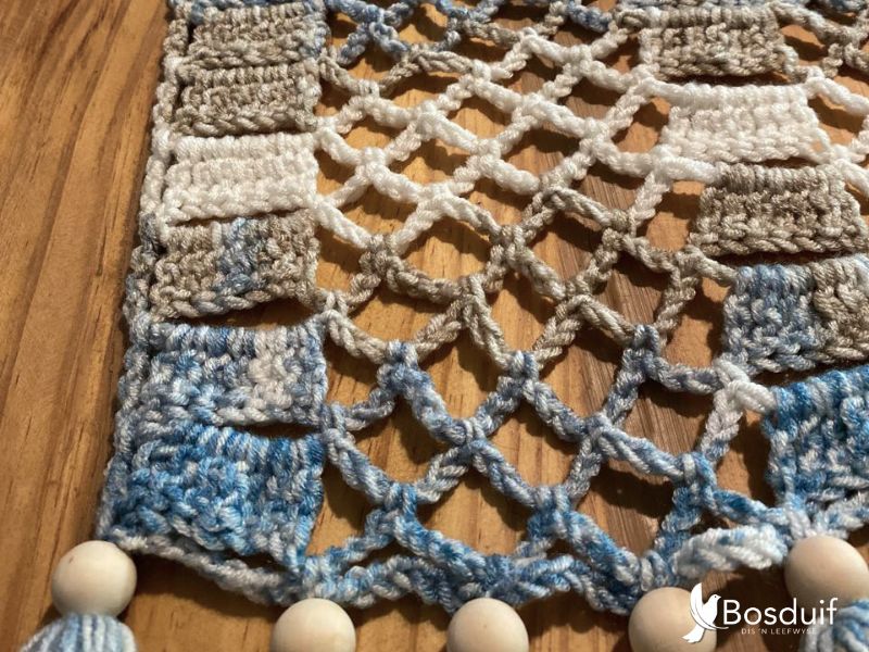 Hierdie tafelloper is gemaak vir tafels waar daar gelag word, waar stories gedeel word en waar koffie saam met ‘n beskuitjie geniet word.